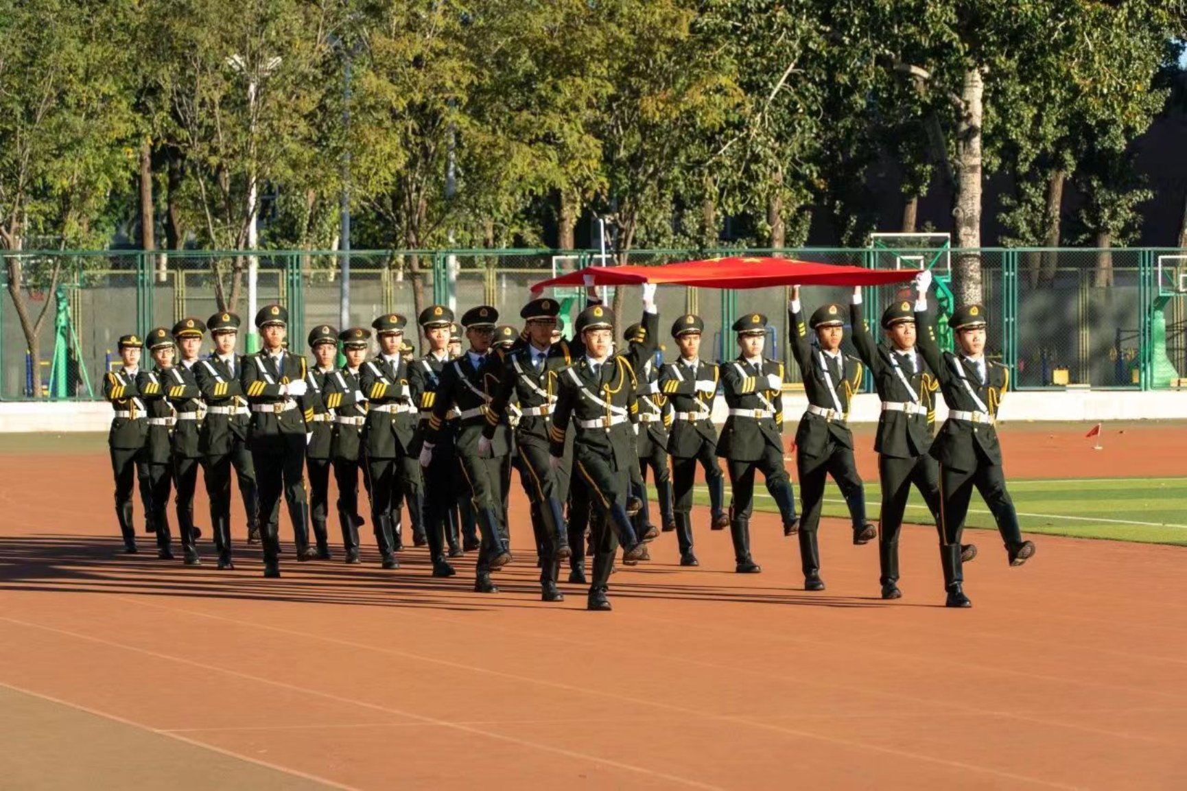 入场完毕后,全体起立,升国旗,奏唱国歌。随后激烈的运动会就正式开始了。